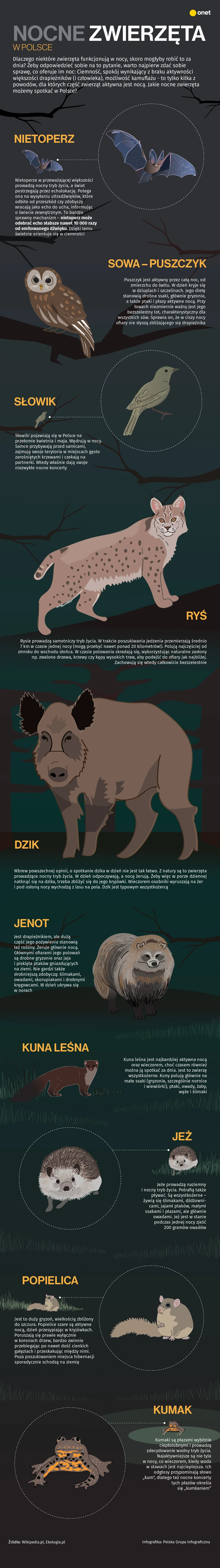 6. „Zwierzęta aktywne nocą” - obejrzenie ikonografiki „Nocne zwierzęta w Polsce”.